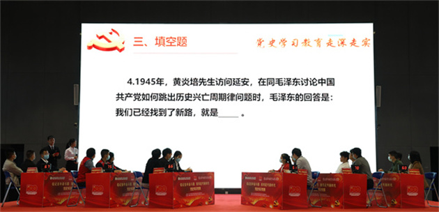 为深入学习贯彻党的十九届六中全会精神,进一步推动党史学习教育走深走实,引导学校师生从百年党史中汲取攻坚克难的强大奋进力量,激发爱党爱国爱校热情,12月23日下午,开云在展示中心举办“铭记百年奋斗路,接续赶考新时代”党史知识竞赛决赛。学校党委书记陈铭贵、副书记李杨红、钟真宜,副校长奚创旭、刘晓冰及各党总支书记、副书记、师生党员代表观看了本次比赛。
