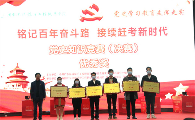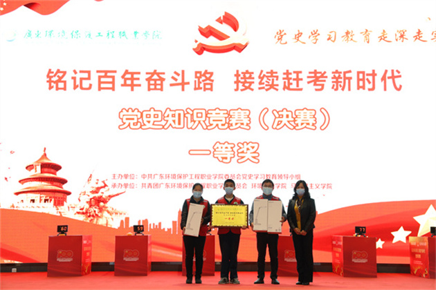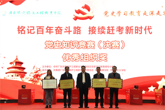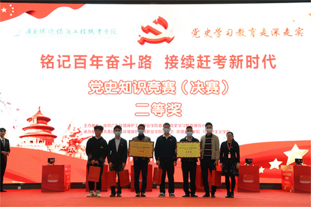 此次活动由校党史学习教育领导小组主办,校团委、环境监测学院、马克思主义学院承办。竞赛分初赛和决赛两个环节,竞赛内容包含:党史、新中国史、改革开放史、社会主义发展史,以及党的十九届六中全会精神等。活动得到全校各党总支的大力支持和积极响应,各党总支高度重视、精心组织,参赛选手认真学习、积极准备。615名师生党员在易班平台上完成初赛线上答题,答题率高达99.2%;决赛以现场抢答赛淘汰的方式,共两轮。全校12个党总支代表队同场竞技,竞答氛围激烈,过程精彩纷呈。最终,环境监测学院党总支代表队获得一等奖,节能与安全学院党总支、食品健康学院党总支代表获二等奖,第一党总支、第二党总支、中职教育部党总支代表获三等奖,第三党总支、第四党总支、环境工程学院党总支、人居环境学院党总支、先进制造学院党总支、环境管理与大数据学院党总支代表获优秀奖。节能与安全学院党总支、环境监测学院党总支、中职教育部党总支、环境管理与大数据学院党总支获得优秀组织奖。