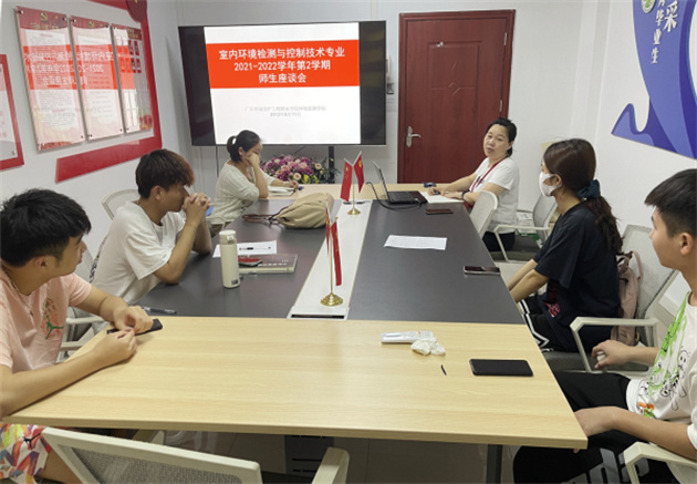 为进一步提高教学质量,增强师生间沟通,了解和帮助解决学生在生活中“急、难、愁、盼”问题,5月11日,室内教研团队在行政楼338会议室召开2021-2022学年第2学期师生座谈会。苑丽红、王冲、陈熠熠、蔡婷、蔡云梅5位老师和2020级室内环境检测与控制技术专业学生代表参加了座谈会。
