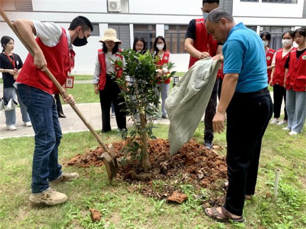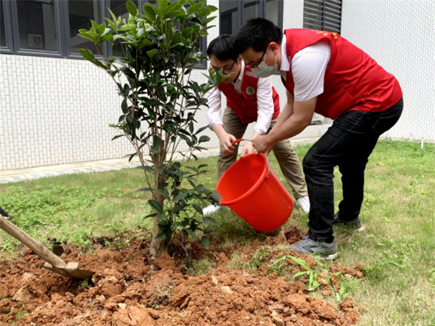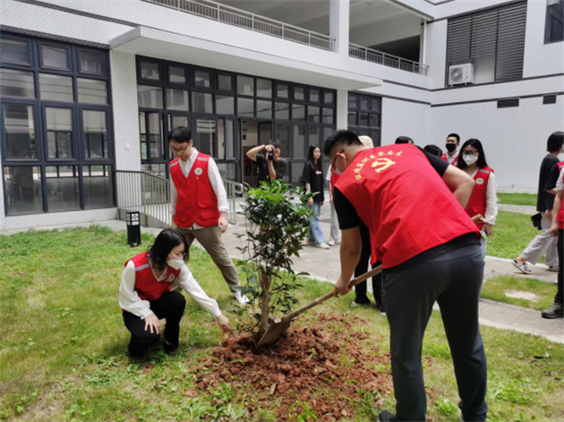 阳光明媚、天气晴朗,大家有组织、有纪律、有计划地开展活动。在党支部书记的带领下,大家一起种树、填土、浇水,共同植下充满希望的桂花树苗,期待桂花树茁壮成长,也期待学生党支部的师生党员们在工作中取得更多成绩,为学校和学院发展贡献一己之力。