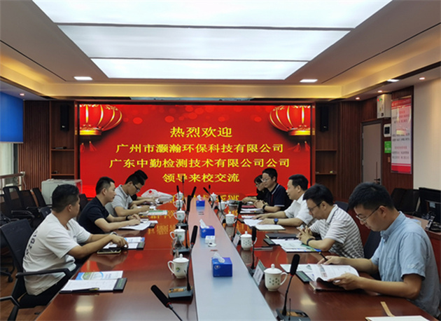 6月14日下午,广东中勤检测技术有限公司冯九斤总经理、广州市灏瀚环保科技有限公司余跃经理一行来校洽谈校企合作。学校党委书记陈铭贵、副校长刘晓冰、环境监测学院党总支书记朱称水、副院长罗超及相关教师参加了活动。