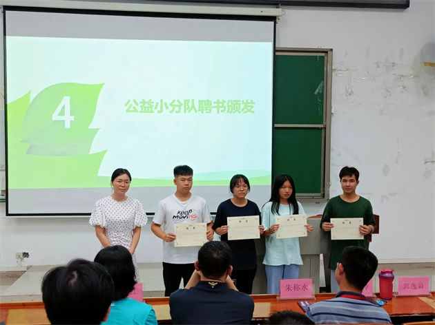 朱称水书记致辞指出,室内环境质量与人体健康息息相关,开展室内环境污染防控公益活动,非常有意义,提高居民对室内环境保护意识,倡导绿色、环保、健康的生活方式;此次活动也是“三全育人”实践育人的重要举措,希望大家发挥专业优势,服务居民、服务社区、服务社会,为打造绿色宜居环境做出积极贡献。郭逸枭老师对活动做了具体安排,并要求志愿者弘扬“奉献、友爱、互助、进步”的志愿者精神,专业、热情服务,展现环保学子的良好精神风貌。随后,张静玲副书记为志愿者颁发聘书。