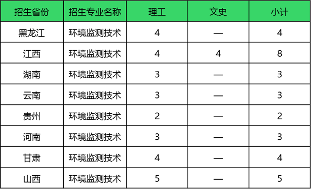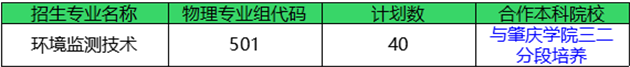2022年夏季高考,环境监测技术专业招生计划96人。其中广东省招生64人,省外招生32人。
