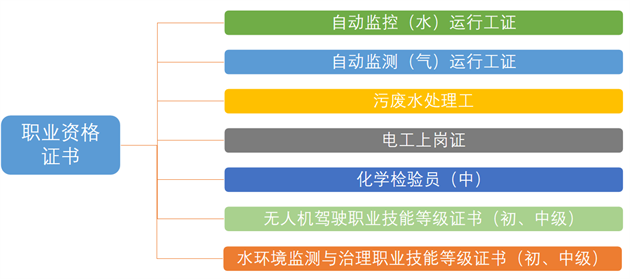 水环境智能监测与治理专业旨在培养面向生态环境、水务、水利、市政等行业企事业单位的水环境监测、水污染防治、水生态环境修复、生态环境智慧监测等职业群,从事水环境智能监测、生态环境智能监测、水质分析检验、智慧水务、水环境治理、智能监测设备运行管理等工作,具有一定创新创业能力和较强实践能力的复合型技术技能人才。专业学生可考取职业资格证书如下: