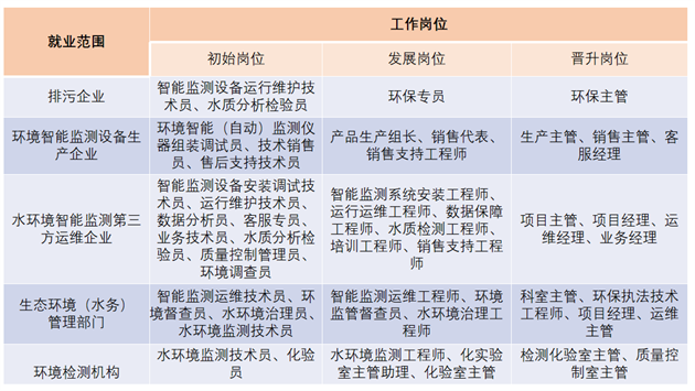 生态环境智慧监测公司:从事环境智能监测设备组装与调试、智能监测系统运行维护、水质检测与分析、环境监测数据审核与应用、智能监测设备售后技术支持等工作。