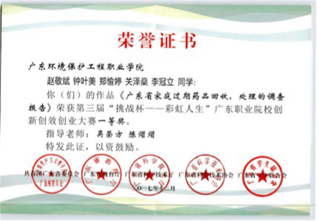 学生可持续发展能力强,在各类技能竞赛中屡获殊荣,获省级及以上技能及创新创业奖项多项,并打造了一批“绿色文化实践”的学生社团活动,如职业技能大赛、挑战杯、“互联网+”创新创业大赛、环保科技创新大赛、环保科普知识下乡等,培育更加关注于学生个体成长和可持续发展的绿色文化和环保工匠精神。