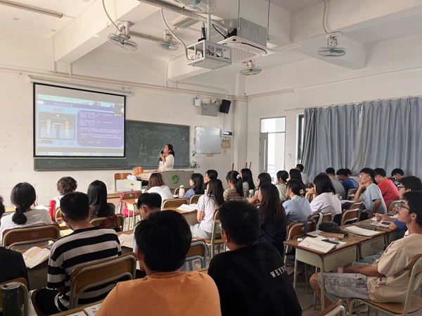 本学期公开课既有理论讲授,也有实训实践。莫家乐老师通过“屠呦呦——共和国勋章获得者”视频作为课堂引入,不仅让学生很好地了解屠呦呦的工作内容和重要贡献,也巧妙地设置问答自然地过渡到课堂主讲内容;陈熠熠老师通过自行剪辑的无声动画和视频,结合精心制作的PPT,辅以自身的细致讲解,让学生更好地理解和掌握原电池的结构;王固宁老师的实训教学从安全教育开始,向学生详细说明了二氧化氮测定的实训安全要点,并通过PPT讲解、教师现场示范、学生实践操作点评、结果实例计算等讲解了二氧化氮的测定步骤和操作要点。