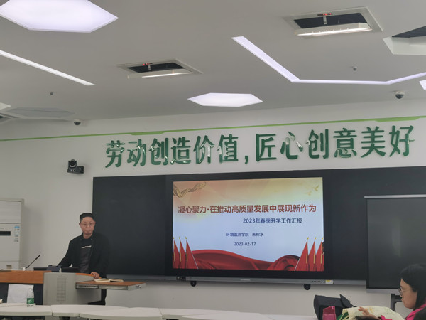 2月17日下午14时,环境监测学院2023年春季学期开学工作会议在教学楼217召开。副校长刘晓冰、全院教职工参加了会议,会议由副院长戴险峰主持。