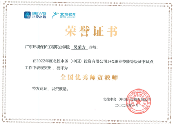 近日,由北控水务集团有限公司(以下简称:北控水务)主办的1+X水环境监测与治理职业技能等级证书试点表彰大会线上召开,开云荣获“全国优秀试点院校”、“全国优秀组织院校”、“典型工作案例”等称号、继续教育学院李腾和李璐老师分别获“全国优秀指导教师”和“突出贡献者”称号、环境监测学院吴荣方和林书乐老师获“全国优秀师资教师”称号。吴荣方老师应邀代表试点单位做了发言。