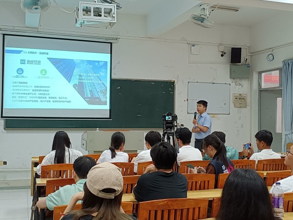 谢康在教学楼201为同学们带来了一场生动的行企认知课程,详细介绍了广东盈峰科技有限公司的发展概况、业务领域、人才需求和职业发展路径。