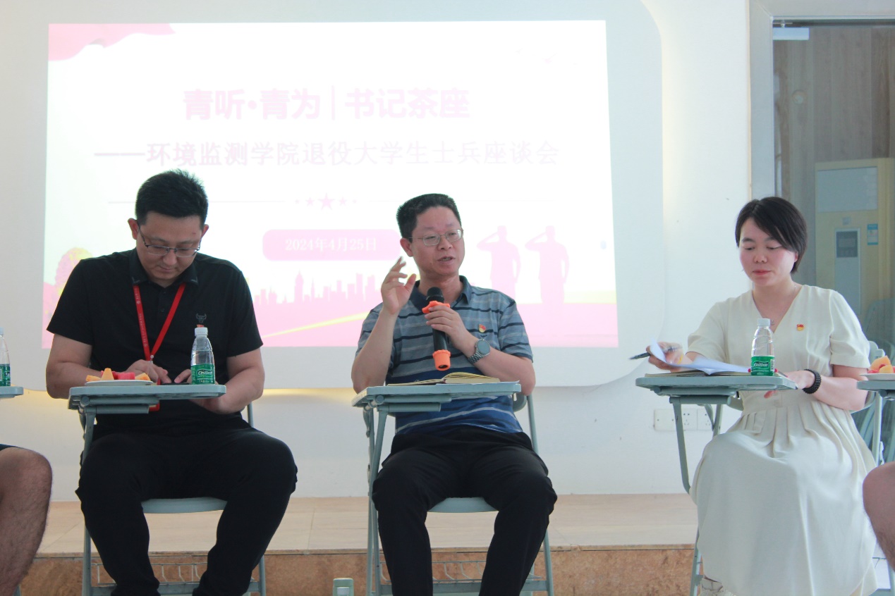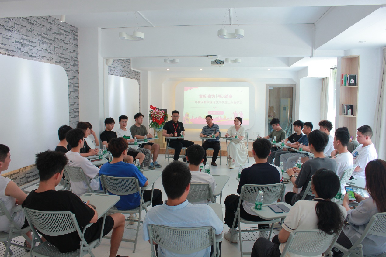 听青年心声,领青春航向,建绿美生态,助青年有为,为深化我院“一站式”社区建设,4月25日下午,我院在“一站式”学生社区召开“青听·青为”书记茶座暨退役大学生士兵座谈会。学院党总支书记朱称水、全体辅导员、全体在校退役士兵大学生以及有入伍意向的2025届毕业生参加了座谈会。会议由党总支副书记张静玲主持。