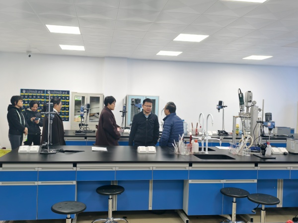 当日下午,调研组赶赴江门职业技术学院,与该校材料与食品学院院长徐朝华、副院长夏德慧及专业负责人等进行了座谈交流。徐朝华院长系统介绍了学院化妆品技术专业的办学历史、课程体系设置、教材选用、办学规模以及毕业生就业情况,分享了该专业在长期实践中积累的宝贵经验。会后,夏德慧副院长带领调研组参观了校内实训场地,现场讲解了实训设备的配置与使用情况,以及实训教学的组织与实施过程。