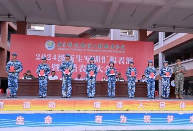 此前,广州校区2024级新生军训汇报表演暨总结表彰大会举行。党委书记陈铭贵、副校长宋学忍,承训部队领导张洪碧,相关职能部门、中职教育部主要负责人,带训官兵代表、新生班主任以及参训新生参加大会。