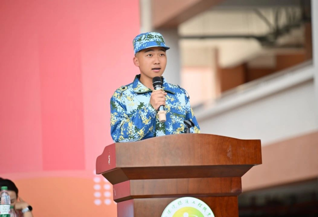 受训新生代表陈泽鑫发言说,回顾这段充满挑战与成长的时光,收获的不仅仅是黝黑的皮肤和健康的体魄,更是坚韧的意志、顽强的精神和深厚的友谊;在今后的学习生活中,要褪去娇气,不断磨砺锐气、锻造胆气,坚定理想信念,努力练就过硬本领,立报国强国大志向,做挺膺担当奋斗者,以青春之我,努力追梦圆梦;执青春之笔,书写无愧于时代的奋斗篇章。