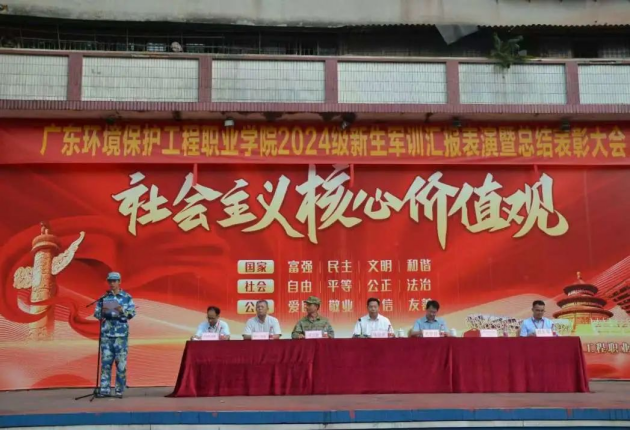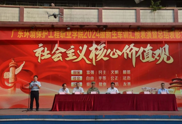 不负韶华,扬帆起航,10月22日,学校举行2024级新生军训汇报表演暨总结表彰大会。南海区武装部部长张建军,承训部队领导朱世杰,党委书记陈铭贵、党委副书记钟真宜、副校长冯定坚,丹灶镇武装部副部长邓丰年,丹灶中学副校长麦永炽,学校相关职能部门负责人、各二级学院(部)党总支书记、副书记,全体军训教官、新生辅导员及2024级新生参加了大会。