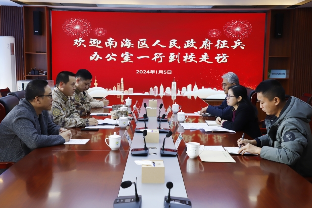 邓晓飞表示学校拥有浓厚爱军拥军氛围,历来是南海区兵员征集大户,对学校近年来国防武装工作取得的显著成绩给予充分肯定,并希望双方在国防教育、军事课程建设等方面进一步深化合作与交流,全面推动大学生征兵工作再上新台阶,为国家输送更多优质兵员。(文图/组织宣传统战部(武装部)陈英伍 陈杰霖)