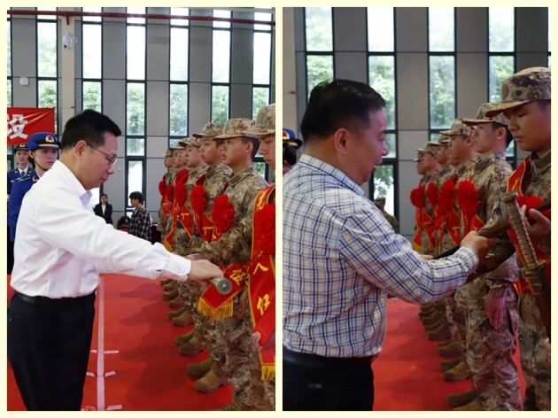 欢送会宣读了校园地26名入伍新兵名单,通报了学校2025年上半年征兵工作情况,家长代表为新兵佩戴光荣花,陈铭贵、孙水裕分别为新兵颁发入伍通知书、纪念品。