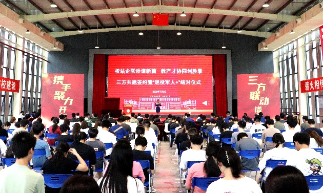 钟真宜在致辞中向长期以来关心支持学校发展的各界人士致以最诚挚的感谢。她表示,三方携手共建,不仅是资源的整合、优势的互补,更是对为党育人、为国育才使命的共同践行。要聚焦三大核心任务:一是深化人才培养模式改革,以双拥企业送岗进校门为机遇,通过校企合作方式,为企业输送更多“用得上、留得住、发展好”的高技能人才;二是强化产学研协同创新,依托学校的科研优势与企业的实践平台,共同攻克技术难题,推动科研成果转化;三是助力地方经济高质量发展,围绕丹灶镇地方产业特色,打造产教融合示范基地,为区域产业升级注入新动能。