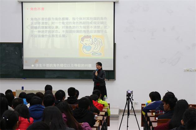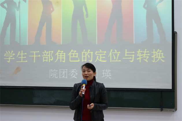 由团委刘瑛副书记为学员们带来第三堂理论课,主题是学生干部角色的定位与转换。刘瑛老师绘声绘色地向学员们解释了什么是角色的定位与转换,如何给自己一个清晰的作为学生干部的定位,以及如何能成为一名有情怀的大学生骨干。刘瑛老师在授课中提到,如果要成为有情怀的大学生骨干,首先就要成为一名优秀的学生干部,认清自己是谁、自己的责任是什么、应该做什么、能做什么、以及怎么做。课堂上,老师诙谐幽默、寓教于乐;学员们认真听讲、积极发言。在这激情洋溢的课堂上,学员们不仅学会了在理想与现实之间的平衡点进行自我定位,也更明白情怀二字对于青年马克思主义者的意义。
