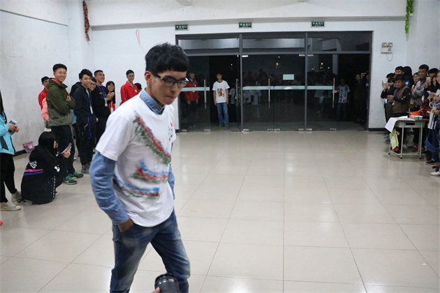 而晚上在C栋实训楼一楼举行的是名为青春之彩的“服装发布会”;考验的是作为一名优秀的团学干部所具备的相互协作能力和创新思维。各组学员在由工作人员提供的纯白T恤上作画,向观众诠释创作理念并以走秀的形式展示作品。