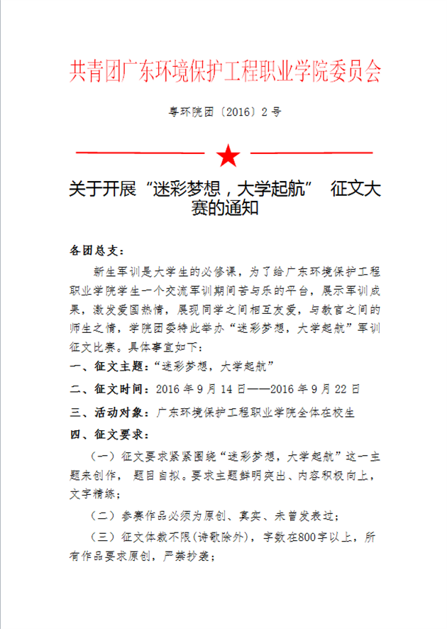 关于开展“迷彩梦想,大学起航” 征文大赛的通知