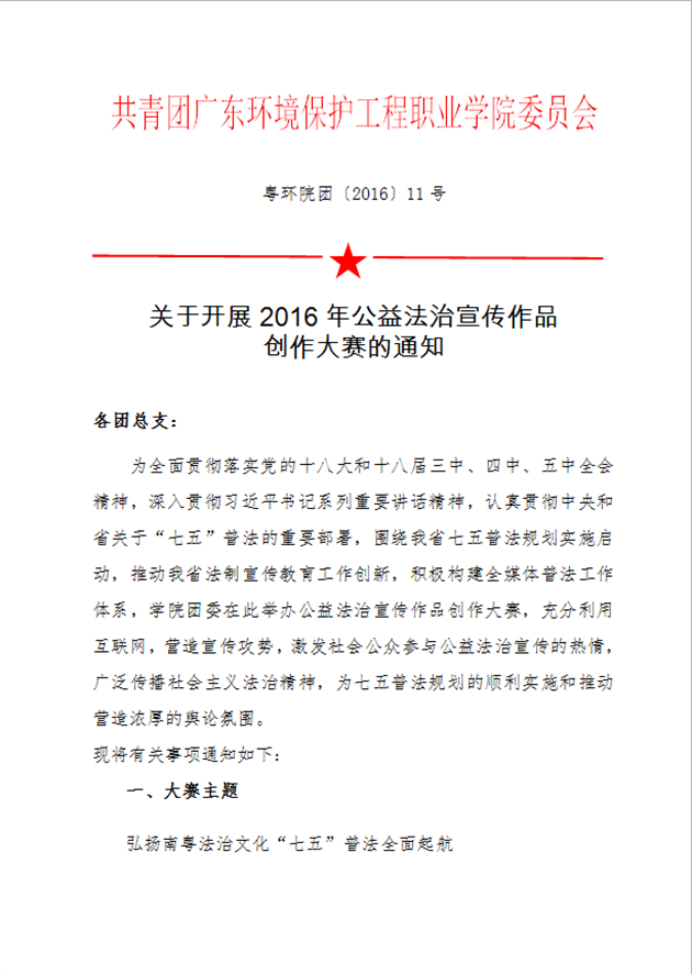 关于开展2016年公益法治宣传作品创作大赛的通知