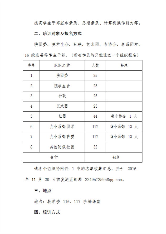 关于推选优秀学生干部参加2016年团校暨青马培训班暨学生干部后备人才培训班的通知