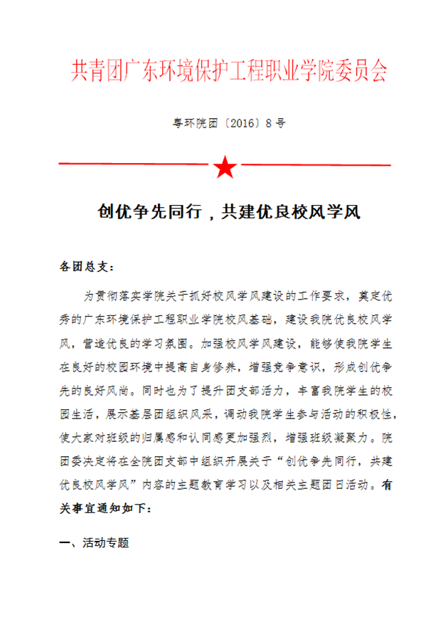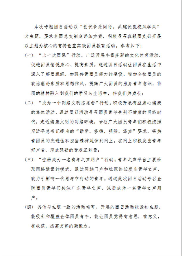 关于“创优争先同行,共建优良校风学风”团日活动的通知