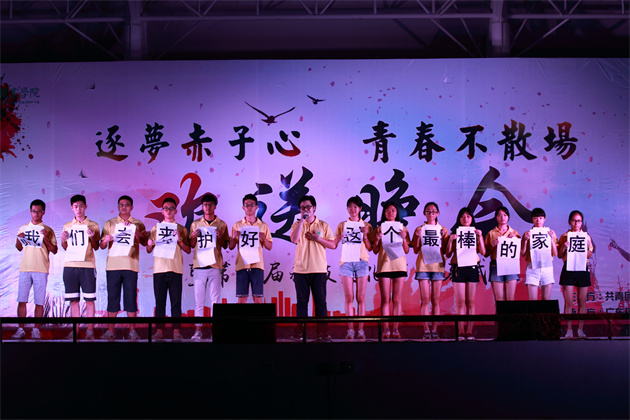 陈文韬书记为欢送晚会致辞,他表彰了我院学子在第五届科技文化节中获得的众多荣誉,鼓励再接再厉,为校争光。他还表达了对14级学子的殷殷期盼,寄语大家用刻苦学习的勇气与毅力去面对今后人生中的长风骇浪,一份眷恋留母校,满腔热血走四方。