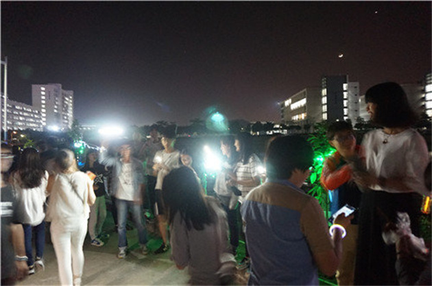 夜幕降临,同学们也纷纷下课了,这时夜市才真正地开始。人流渐渐增多,如果说下午的人流是细水的河流,那晚上的人流则是奔腾不息的黄河。但有些摊位依旧开辟出一片天地给游人玩游戏,有些摊位就集聚了一群“吃货”,孜孜不倦。采访一路游走的人,虽然夜市在后山,会让人不方便,但是这并不能阻止他们的热情,不仅这是一年一度的嘉年华活动,更多的是他那吸引人的魅力。