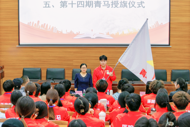 嘹亮的团歌拉开了本期青马班的序幕。钟真宜指出:实施“青马工程”是学校践行为党育人、为国育才初心使命,是落实立德树人根本任务的重要战略任务,是“大思政”格局下思想引领的主要阵地。旨在广大青年中着力培养造就一大批用马克思主义中国化的最新理论成果武装的马克思主义者。她希望青马学员们要坚定理想信念,铸牢对党忠诚;要发扬斗争精神,锤炼政治品格;要锤炼过硬本领,勇于挺膺担当。随后本期青马班学员代表作表态发言。