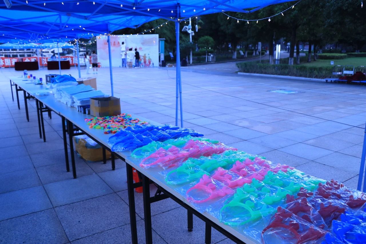 13日晚上7点,环院南广场灯光密布,人潮涌动。参加活动的同学们在现场工作人员的指引下领取活动装备,他们涂鸦荧光衣物,佩戴荧光饰品,在签名墙上写下自己的名字,记录着此刻内心的喜悦。
