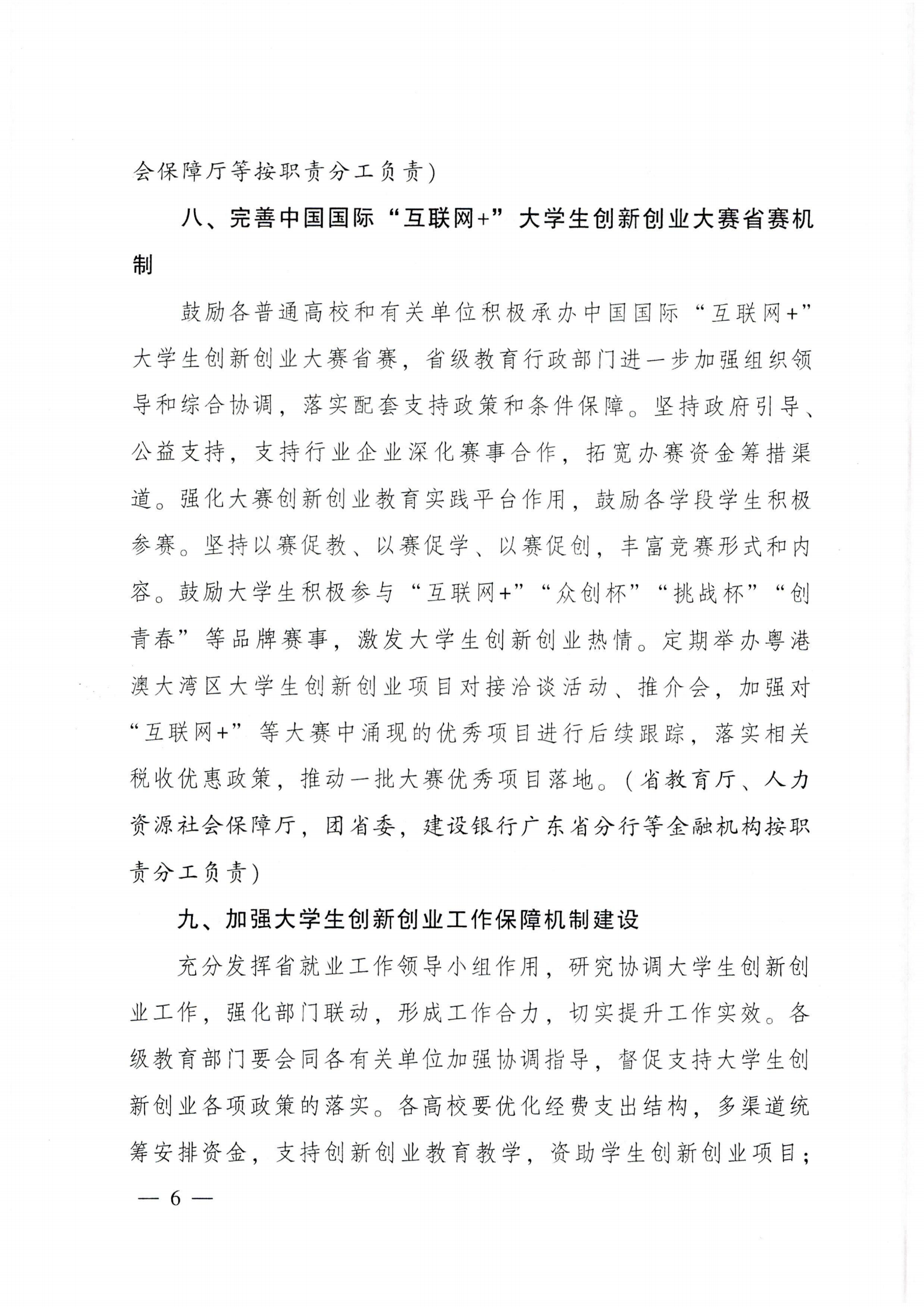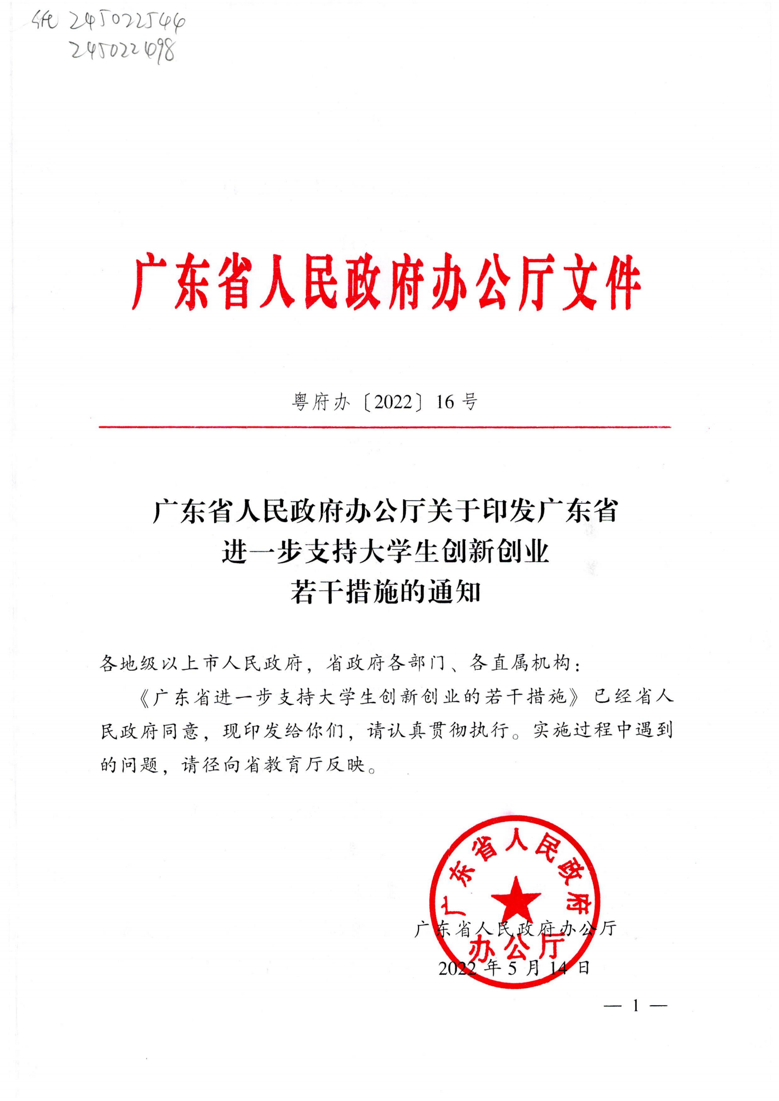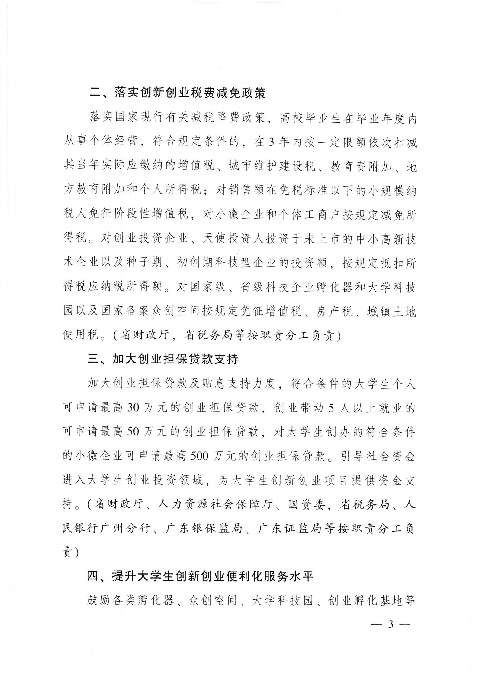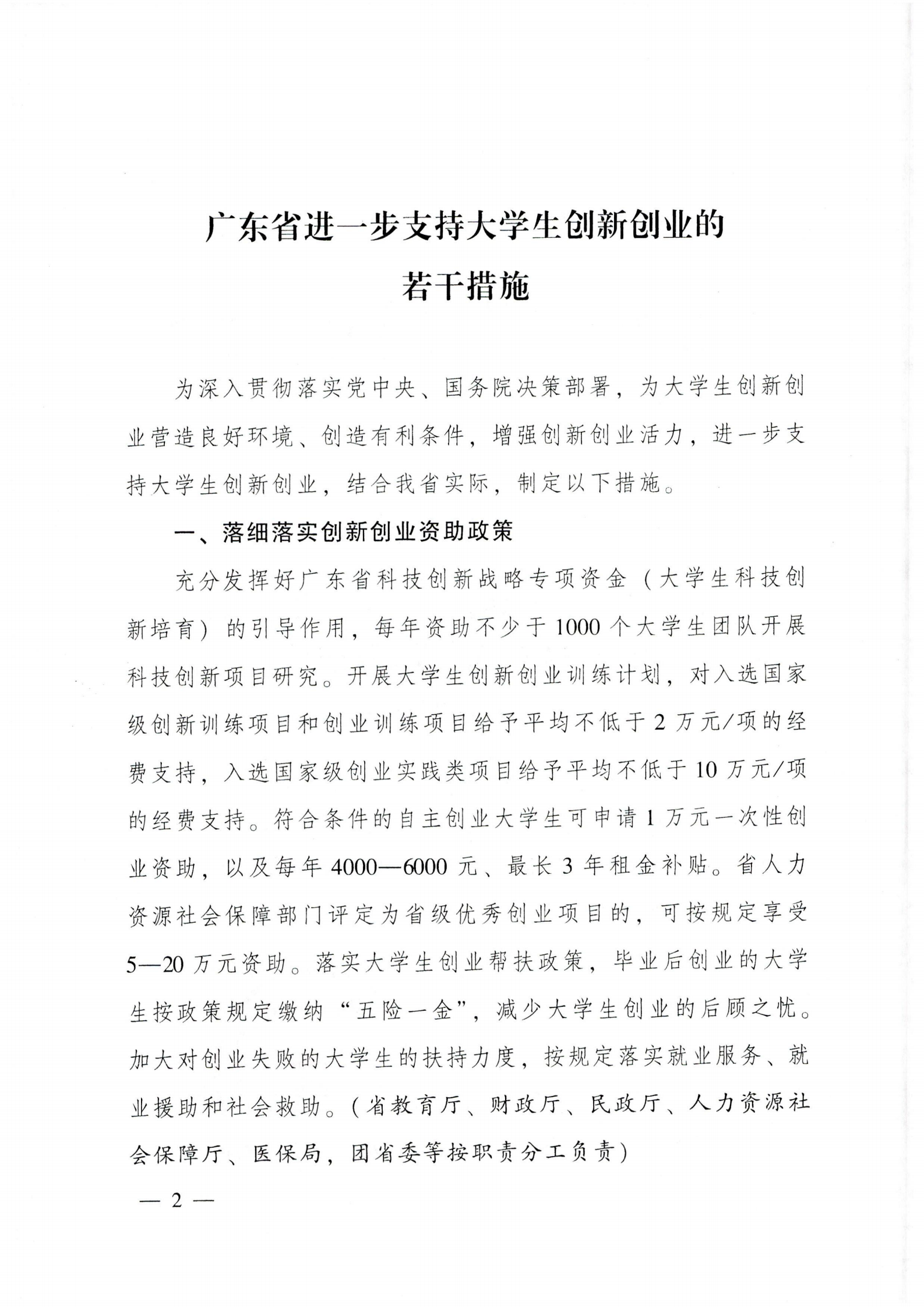 广东省人民政府办公厅关于印发广东省进一步支持大学生创新创业若干措施的通知