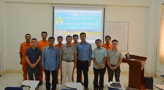为加强广东省高职教育“一类品牌”专业环境工程技术专业的国际交流与合作,落实政校行企合作服务绿色“一带一路”建设任务,我院环保工程技术专业教师组团(以下简称“服务团”),奚创旭副院长带队,于2017年8月27日-9月1日赴玖龙纸业(控股)有限公司越南正阳纸厂开展了为期6天的环保技术培训服务。