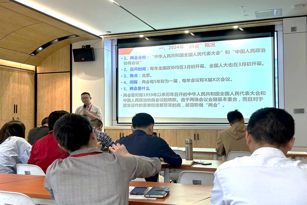 第一党小组组长卢东亮进行领学。他首先带领大家一起学习了2024年两会的概况,并重点解读了新质生产力,包括新质生产力的提出;新质生产力的定义和内涵;新质生产力与传统生产力的对比;新质生产力的发展方向以及发展新质生产力的重要战略意义等内容。