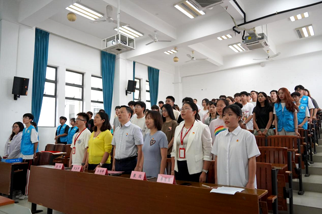 活动伊始,全场起立,奏唱中国共产主义青年团团歌。激昂的旋律回荡在会场,激发了在场每一位师生对青春力量的感悟和对美好未来的憧憬。