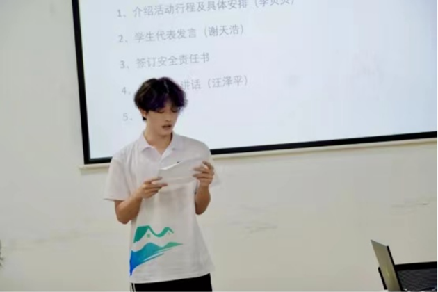 紧接着,学生代表谢天浩发言。他分享了自己对“三下乡”活动的理解和期待,表示将珍惜这次难得的机会,深入基层,了解社会,锻炼自己,为乡村振兴贡献青春力量。