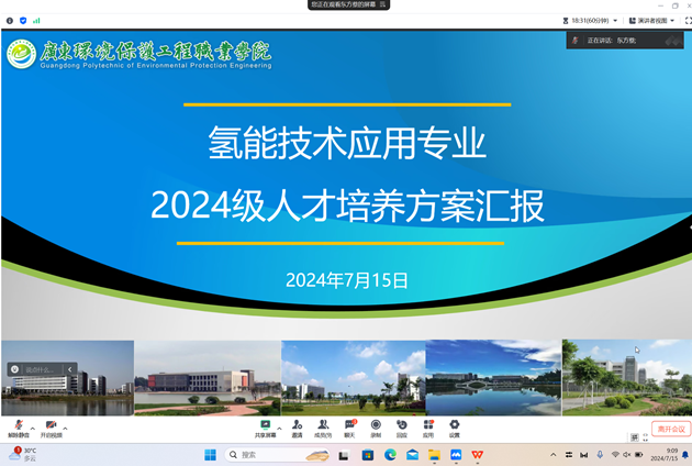为提高专业建设水平与人才培养质量,构建高质量人才培养体系,节能与安全学院于7月15日召开了氢能技术应用专业建设委员会会议暨2024级人才培养方案论证会。会议以线上+线下相结合的方式召开,节能与安全学院院长徐娟主持会议,氢能技术应用专业全体教师参加了会议。会议邀请了华南新能源汽车产业促进中心项目总监刘洋、佛山速冠应急救援服务有限公司总经理邱永乐、佛山市清极能源科技有限公司总经理助理赵玉彬、星源材质(佛山)新材料科技有限公司技术部经理袁晓林和康明斯恩泽(广东)氢能源科技有限公司工艺经理陈宇等专家。