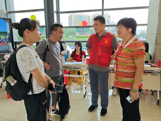 当天一早,教师党支部的成员们便在报到处忙碌起来,他们佩戴党徽,面带微笑,热情地迎接每一位踏入校园的新生及家长。党支部书记在活动现场亲自指导工作,确保迎新流程井然有序。
