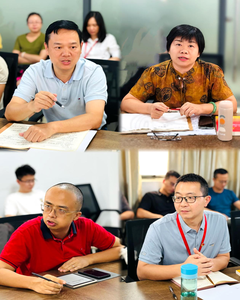 接下来是业务学习环节。首先由王在华老师分享了他成功申报国家自然科学基金项目的宝贵经验,他从申报书的编写技巧到方案可行性的关键要素,多角度全方位介绍了自己的心得和感悟,为参会教师提供了实用的指导。接下来,施丽华老师分享了她在校外实践基地申报方面的体会,特别是介绍了与广东邦普循环科技有限公司的合作历程,强调了前期的工作积累、业绩和资源的重要性。副院长卢东亮表示,各类业务工作,不是一蹴而就,需要多做尝试、多打磨,才有可能有突破。