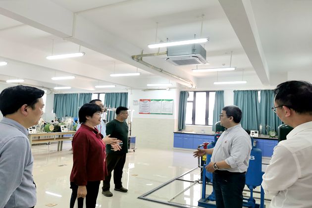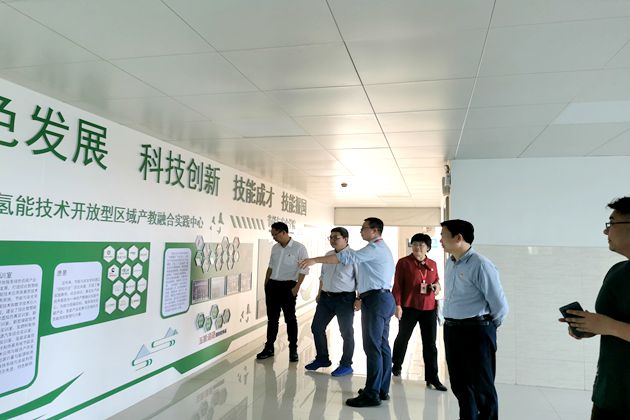 在氢能技术与装备实训中心,双方聚焦氢燃料电池系统生产、绿氢制备等前沿领域展开探讨。徐娟院长表示,学院充分发挥位于氢能产业聚集区的核心优势,联合丹灶本地氢能企业构建“校-地-企”协同创新平台,为产业发展培育更多优质人才。