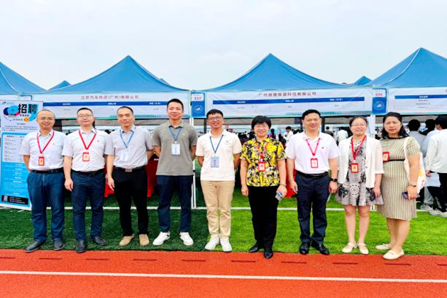 上午9时,全体党员在招聘会现场主题展板前整齐列队庄严合影,展现新时代教育工作者助力就业的责任担当。随后,教师党员们深入企业展位,重点走访了新能源领军企业比亚迪、宁德时代等20多家绿色低碳企业,就“电力储能应用技术”“工业节能技术”等专业岗位需求开展调研,收集企业人才培养的建议20多条,为优化专业建设提供实践依据。