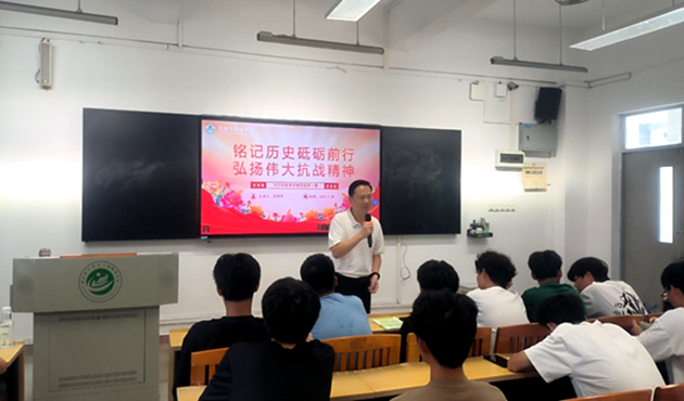 9月29日,节能与安全学院党总支书记汪泽平以《铭记历史砥砺前行,弘扬伟大抗战精神》为题,为25氢能技术应用1、2班学生讲授思政课。