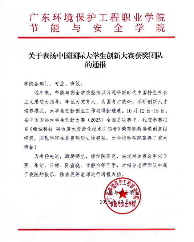 关于表扬中国国际大学生创新大赛获奖团队的通报