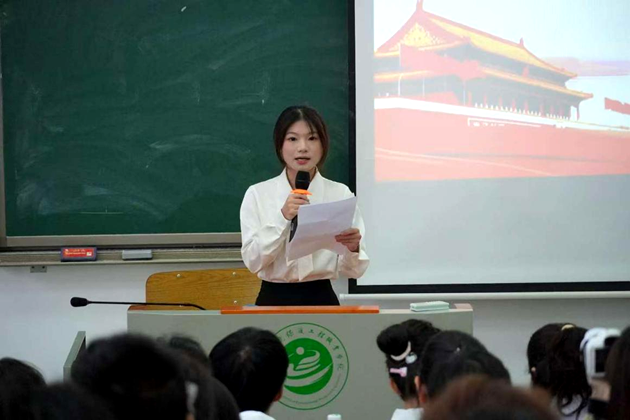 随后,学生代表欧阳滢雪代表学院团委学生会主席团发言。她客观回顾了上一学年团学工作的成果,坦诚指出活动策划贴合度不足、权益反馈效率不高等问题,并提出“做懂同学的服务者、敢担当的行动者、同成长的同行者”的新学期目标,号召全体成员携手优化工作质量。