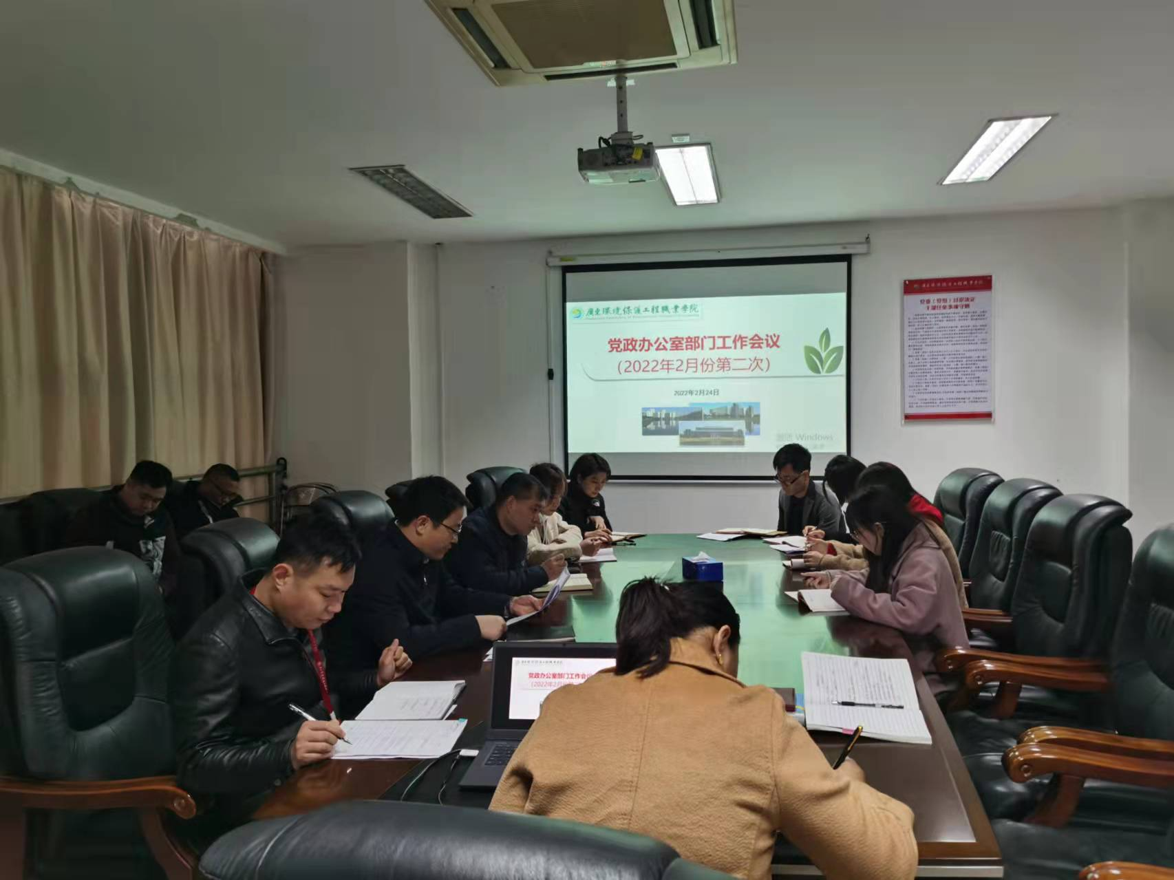 2022年2月24日,党政办公室在行政楼609会议室召开二月份第二次部门工作会议,会议由白丹丹副主任主持,邱扬骏副主任和党政办公室全体工作人员参加会议。