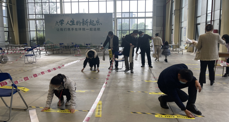 第二党总支的党员们积极动手,将展示中心核酸检测采样的3条采样通道,按照间隔一米间距,粘贴保密宣传“一米线”地贴。同时,为扩大保密宣传,分别在行政楼电梯两侧楼梯粘贴保密标语贴。让广大师生在排队测核酸时自觉保持安全间距,同时达到保密宣传效果。