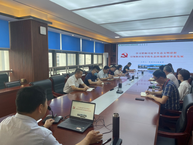 为进一步推进主题教育向基层党组织走深走实,在第52个世界环境日到来之际,6月9日,党委书记陈铭贵以“深入学习贯彻习近平生态文明思想”为主题讲授专题党课。党政办公室党支部、先进制造学院党总支党员聆听了本次党课。