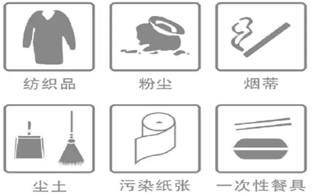废纸:报纸、书本纸、包装用纸、办公用纸、广告用纸、纸盒等;塑料:各种塑料袋、塑料泡沫、塑料包装、一次性塑料餐盒餐具、硬塑料、塑料杯子、矿泉水瓶等;玻璃:玻璃瓶和碎玻璃片、镜子、灯泡、暖瓶等;金属:易拉罐、铁皮罐头盒、牙膏皮等。布料:主要包括废弃衣服、桌布、毛巾、布包等。这类垃圾可以重复使用,减少污染。