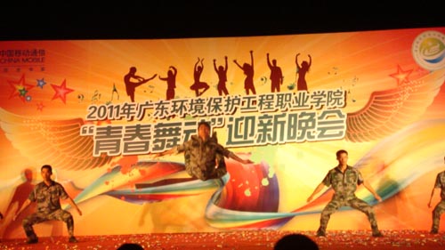 晚会由我院SKY乐队拉开了帷幕,随后表演的双簧《看新闻》,幽默诙谐,搞笑的台词,逗得全场观众欢笑不停,掌声不断;教官队精彩的武术表演和四连同学与教官一起合唱的歌曲《我们都是兄弟》更是将全场的气氛推至高潮,台下的欢呼、呐喊、尖叫声此起彼伏,在晚会的尾声部分街舞社同学们的街舞表演又一次将本场晚会的气氛推至高潮,最后大家在一曲《环院欢迎你》的歌声中结束了本场晚会。